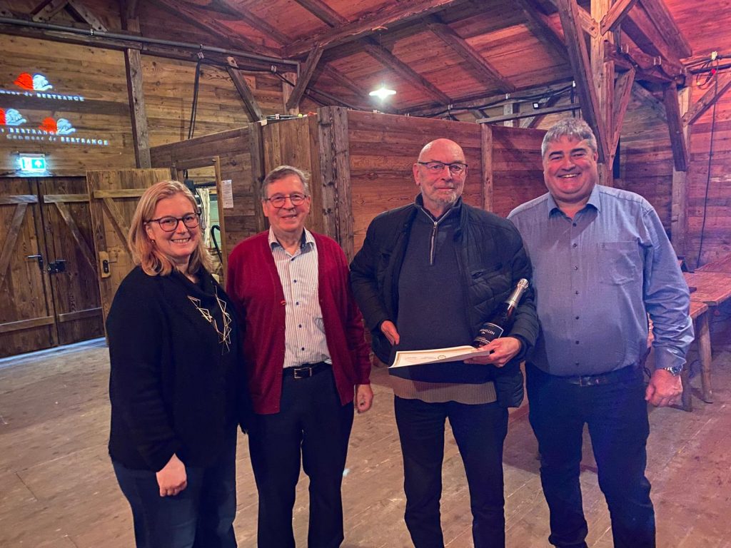 Den 19. Januar war eis Generalversammlung am Chalet. Duerno hu mir eisen Neijoerspatt offréiert. Mir haten d’Freed zwee vun eise Memberen sur place éieren ze kënnen. De Roger Geimer an den Emile Rauchs sinn elo 50 Joer Member an der CSV. Felicitatioun! Als besonnesch Gäscht ware bei äis: d’Ministesch Elisabeth Margue, d’Deputéiert Diane Adehm an den Alex Donnersbach an de Buergermeeschter vu Stroossen Nico Pundel mat senger Delegatioun. Um Neijoerspatt sinn nach d’Conseilleren vun der LSAP an den déi gréng derbäi komm an eng Rëtsch Matbiergerinnen a Matbierger. Hei e puer Fotoe vun deer AG!